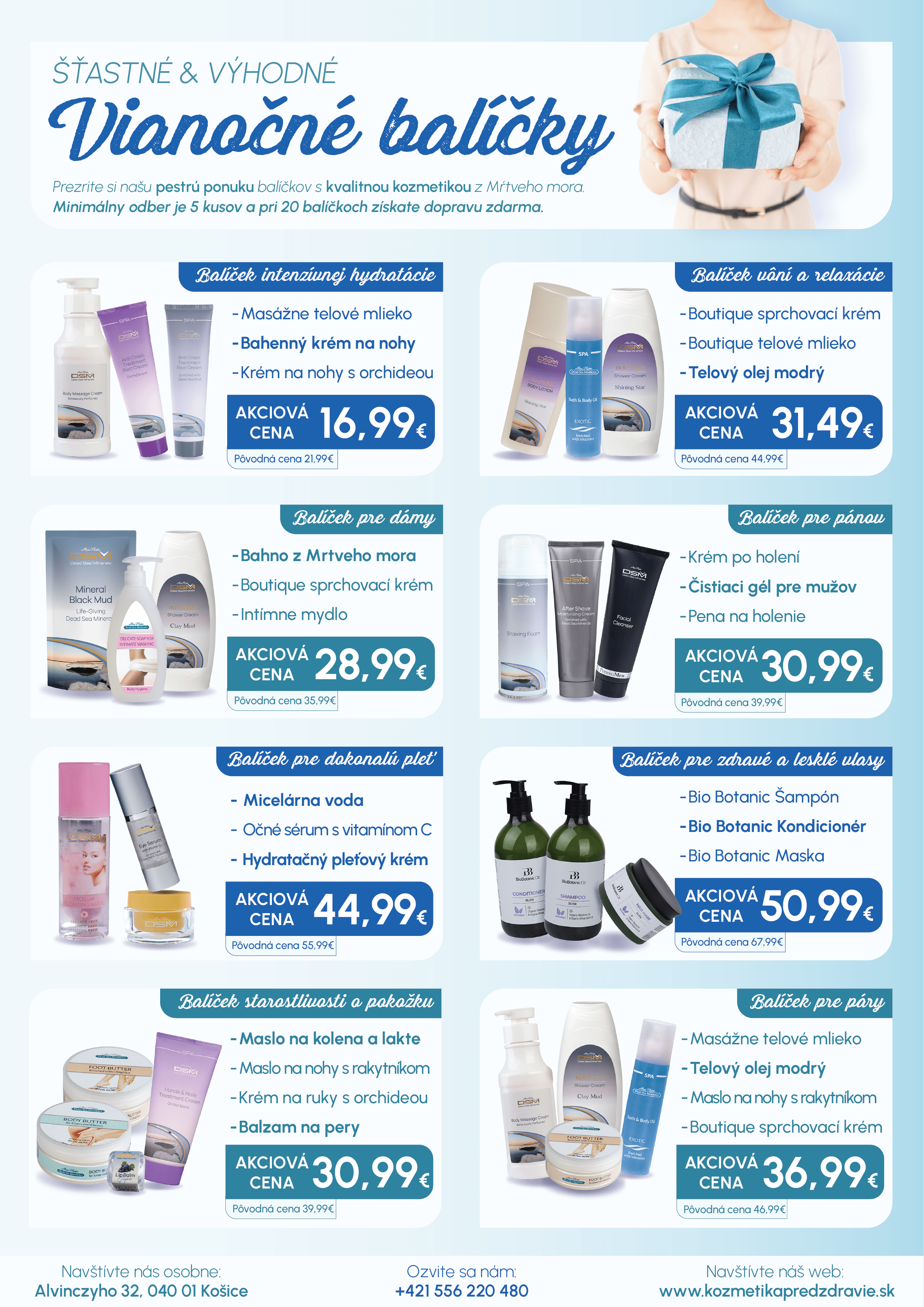Vytvorili sme pre vás niekoľko druhov vianočných balíčkov, ktoré sú zostavené podľa rôznych potrieb a typov pokožky: